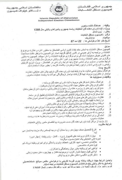تاجای که دیده میشود دربعض پست های مانند زون ها مخصوصا زون شمال در پست هماهنگ کننده زون شمال که درتاریخ 22 / 05 /1387 ازطریق دفتر ولایتی بلخ به داوطلبی گذاشته شده بود سابقه کاری درکمیسیون انتخابات یک امتیاز وتحصیلات عالی یکی ازشرایط بود ودرفورم اعلان وظیفه نیزنوشته شده بودکه واجدین شرایط جهت دریافت وخانه پوری فورمه کاریابی بادرخواستی خلص سوانح، اسنادتحصیلی ، وتصادیق به دفتر ولایتی بلخ دارالانشای کمیسیون مستقل انتخابات مراجعه نمایند. البته بتعداد چندین نفر که دارای تحصیلات لیسانس وماستری بودند ازجمله کسانی اعم خود را کاندیدای پست متذکره نموده بودند که درانتخابات گذشته به صفات مسئول دفتر ولایتی ، آمرارتباط خارجه ومسئول انتخابات زون شمال ایفای وظیفه نموده بودند که درنتیجه صداقت وپایمردی شان ازمحبوبیت خاصی دربین مردمان شمال برخورداراند. تمام اسناد شان توسط دفتر ولایتی بلخ کمیسیون مستقل انتخابات جمع آوری وبه مرکزارسال گردید ، اما متأسفانه ازجمله چندین نفرفوق هیچ یکشان درامتحان خواسته نشدند.. قرارمعلومات اصلاً امتحان گرفته نشده ، درنتیجه شخصی بنام فرهاد افغانزوی توسط داکتر فاروق وردک به کمیسیون مستقل انتخابات بحیث هماهنگ کننده زون شمال معرفی شد. باآگاه شدن معرفی آقای افغانزوی اعتمادی که مردمان شمال به کمیسیون مستقل انتخابات داشتند ازبین رفت وچیزی را که شک می کردند به واقعیت تبدیل شد. بعد ازاین این کمیسیون را منحیث یک کمیسیون مستقل نه بلکه منحیث یک کمیسیونی که بدبختی، ملیت پرستی ، نفاق وبی عدالتی را درجامعه ترویج میکنند خواهند شناخت . اکنون یقین دارم شرایط وصفات را که آقای افغانزوی دارد برای چنین کمیسیون واعضای دارالانشأ آن بخاطرپیش برد امورمحوله وبه کرسی نشاندن اهداف شخصی و گروهی آنها کاملاً موثر ، مفید وآب حیات است اما برای ملت زهرقاتل .