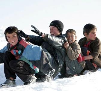 Afghanistani boys enjoying the recent snowfall in the Khair Khana neighbourhood of Kabul.