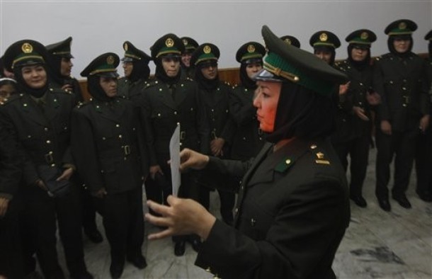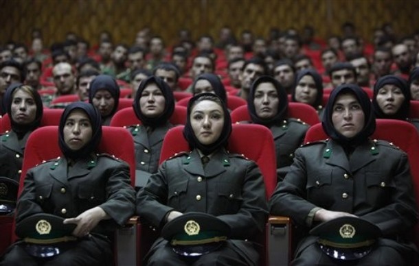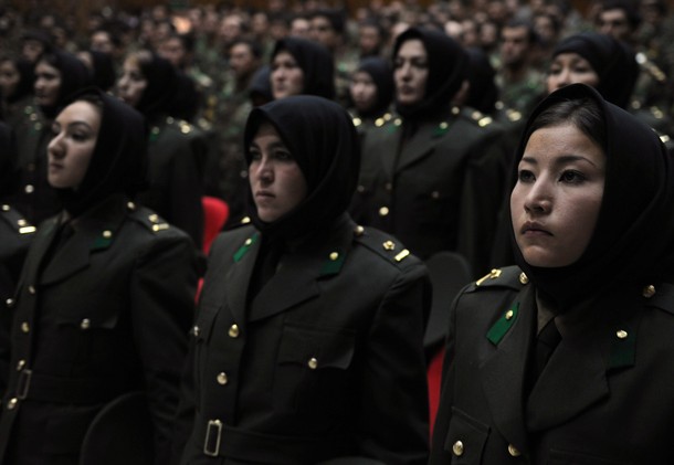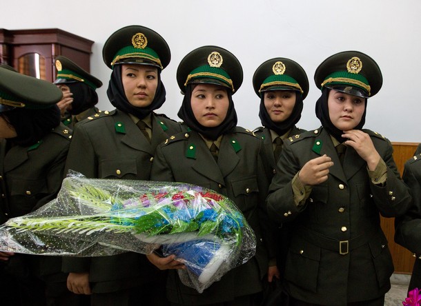 مراسم پایان یافتن آموزش 29 زن در ارتش افغانستان. این زنان زیر نظر ارتش آمریکا آموزش یافته اند. در رژيم جنایتکاران طالب، زنان به شدت سرکوب شده و از تمام حقوق سیاسی و اجتماعی خود محروم شدند. با برچیده شدن رژيم طالبان، وضعیت تا حدودی تغییر کرد اما هنوز بسیاری از زنان در جامعه افغانستان با محدودِت های زیادی روبرو هستند و حقوق آنان نقض می شود.