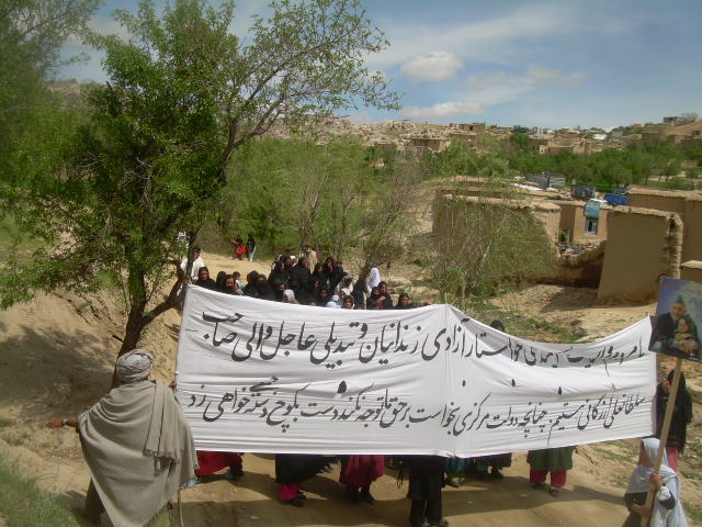 کابل پرس?: امروز برای چندمين روز پياپی مردم دايکندی دست به راهپيمایی و تظاهرات گسترده زدند و خواستار برکناری والی فاسد اين ولايت، محاکمه ی قاضی فاسد اين ولايت شیرزاد در خود دايکندی و آزادی زندانيانی شدند که مردم را در جريان تجاوز جنسی شیرزاد و رشوه ستانی وی قرار دادند.