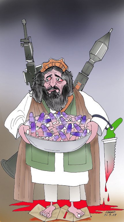 جای نشانه ی تمویل کنندگان و بوجود آورندگان اصلئ طالبان آدمکش و جنایتکار در این کاریکاتور خالیست.