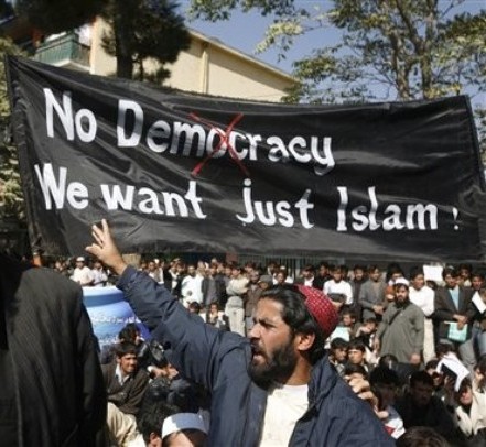 همین دموکراسی است که شما پرچم سیاه و تاریک جهالت را بردست گرفته و به مظاهره می پردازید .واگر از قانون سیاه خودتان استفاده شود باید درجا همة شما را به آن دنیا بفرستند. تا بدانید فرق بین دموکراسی . حمار کراسی چیست.