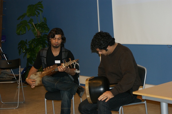 بعد از صرف غذا، هنرمندان و نوازنگان محفل را با نوای دل انگیز موسیقی شرقی که تشویق و هیجان مهمانان برنامه را به همراه داشت، ادامه دادند. ابتدا موسی خان سلطانی و شبانه سلطانی زوج جوان و هنرمند آهنگ " ای مهین من " را خواندند. بعد نبی دلنواز با دنبوره و خواندند آهنگ های محلی هزارگی، حیدر ولی هنرمند جوان و نوازنده ماهر " رباب" با همراهی کاوه محمدیان یکی از بهترینها در هنر نوازش تومبک و در آخر جاوید افسری راد آهنگساز ایرانی آهنگ " محور عشق" را که در سال 2001 برای افغانستان ساخته بود به همرای چند آهنگ دیگر محفل را به پایان رساند.
