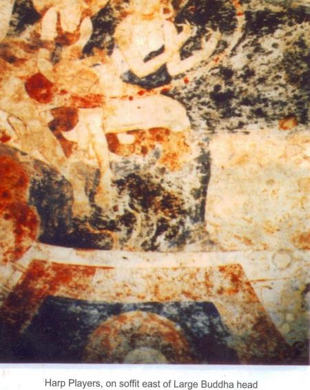 Harp Player, on Soffit East of Large Buddha Head. Bamyan