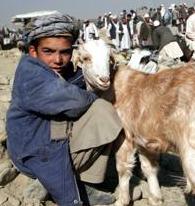 يک پسر که کوشش دارد بزهای خود را در مال بازار شهر کابل در ساحه کمپنی به فروش برساند.
