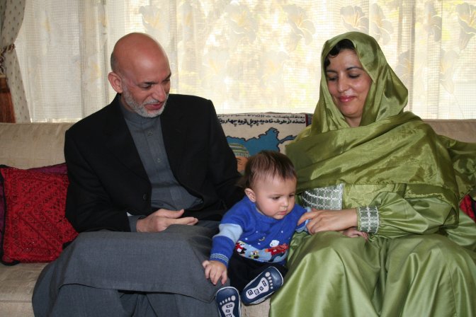 حامد کرزی به زنی خود نشسته ای