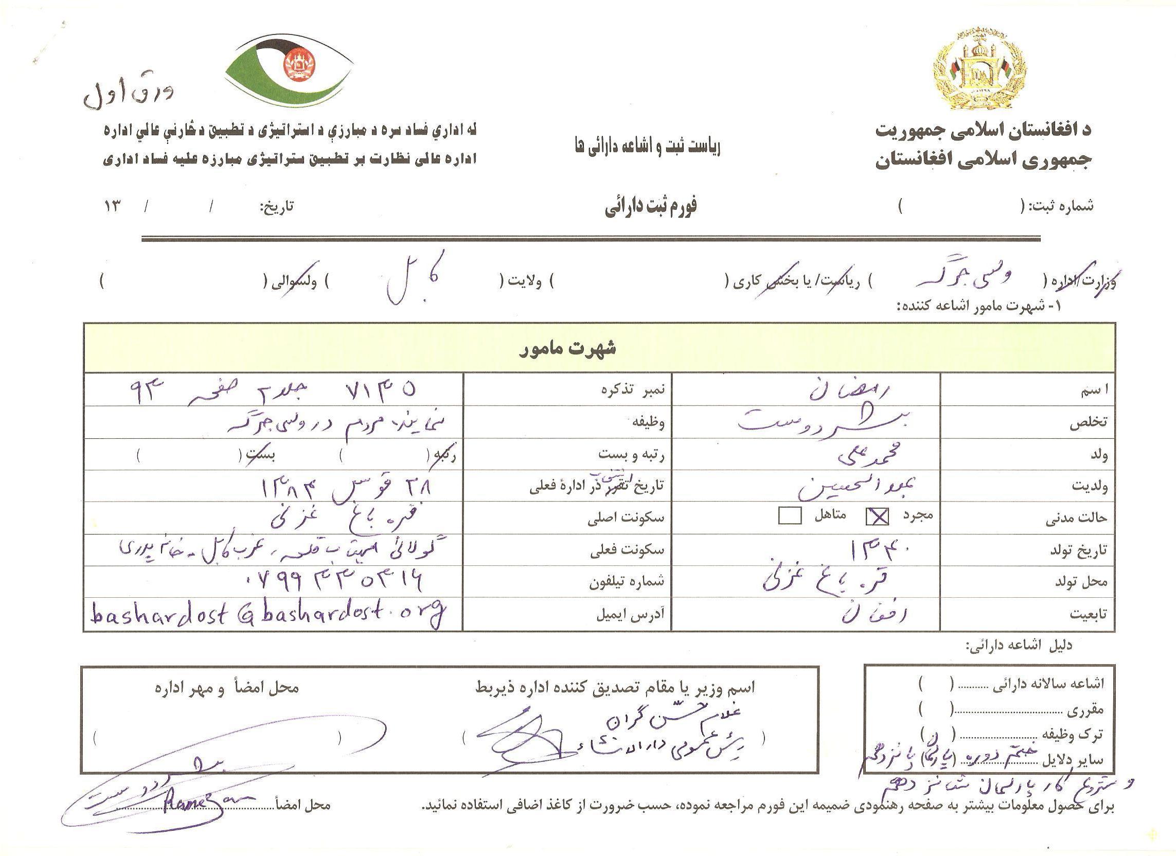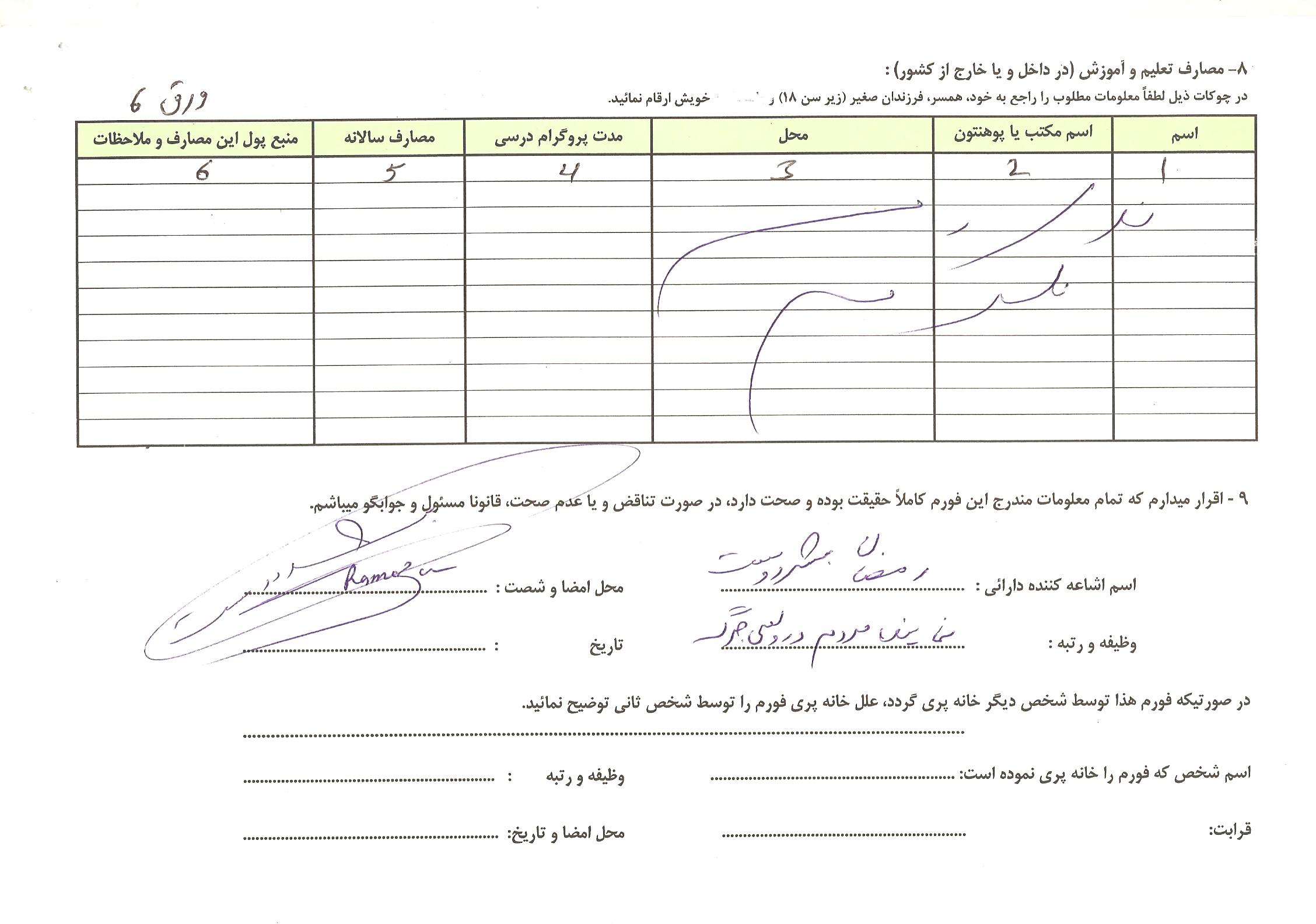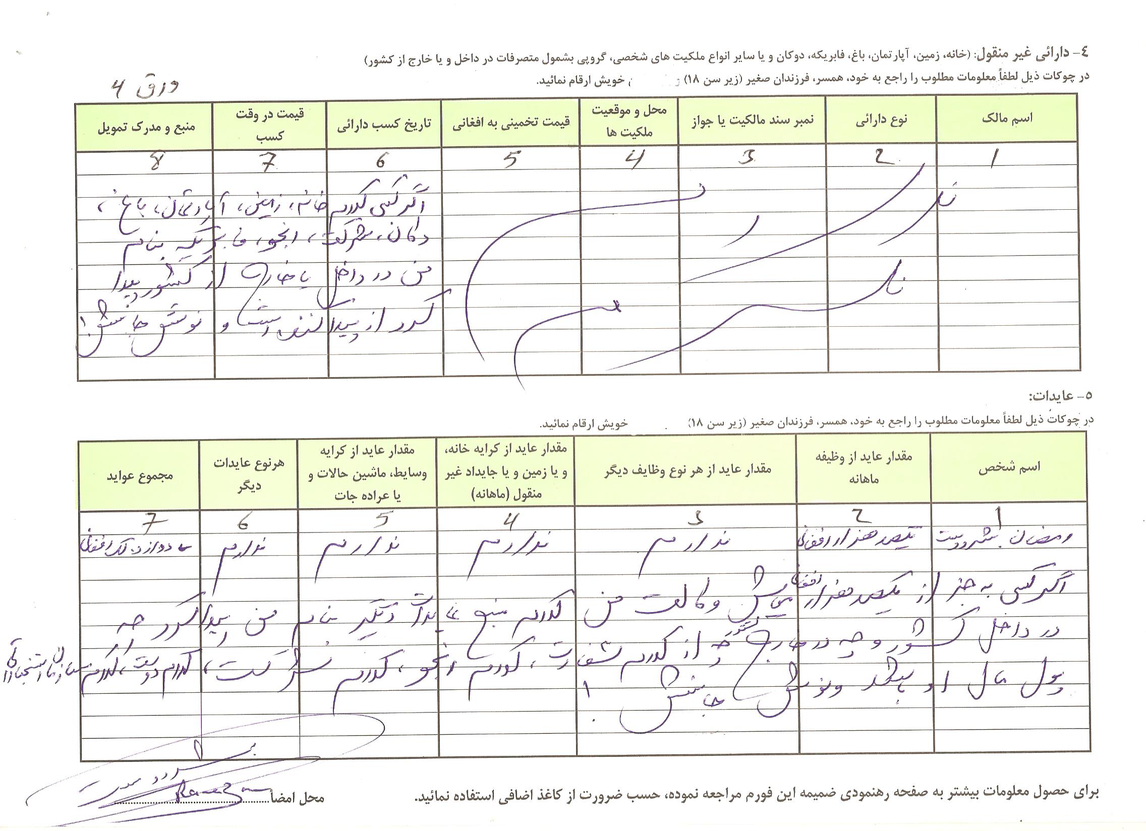 من در آخر دوره کاری 5 ساله وکالت وشروع دوره کاری 5 ساله، فورمه ثبت دارایی های خودرا خانه پرُی کردم و به مرجع قانونی آن فردا میسپارم.