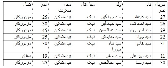 الف. (6): گرفتاری ها از قریه بید مشکین در جریان تلاشی خانه بخانه و قتل عام آنها توسط دسته قاتلین در نیک در 8 ماه جنوری.