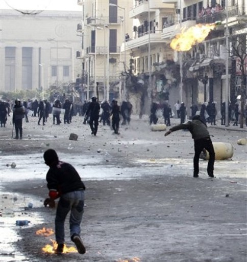 ولی در مصر،مردم این کشور با قاطعیت تمام و شعار واحد که همان سقوط رژیم حسنی مبارک رییس جمهوری مصر بود بعد از هژده روز تظاهرات متداوم موفق به سرنگونی حکومت دیکتاتوری و مستبد حسنی مبارک ریس جهوری مصر که بیش از سی و دو سال حاکمیت داشت شدند.