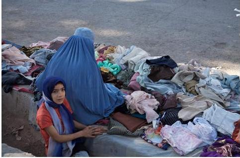 يوه ښځه په هرات کی زاړه کالي خرڅوی.