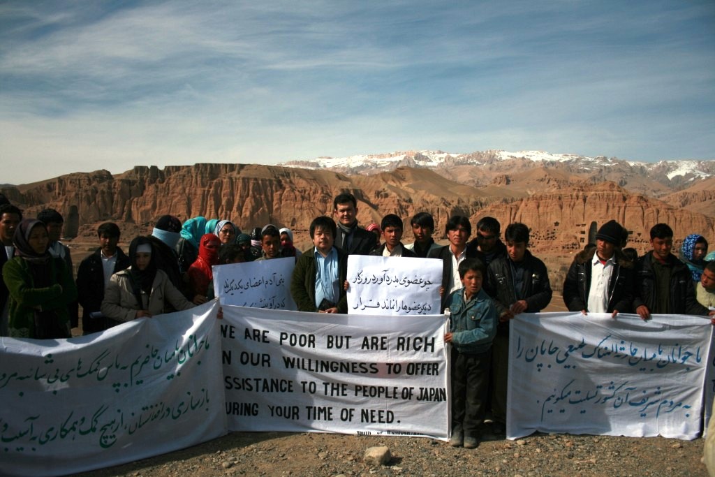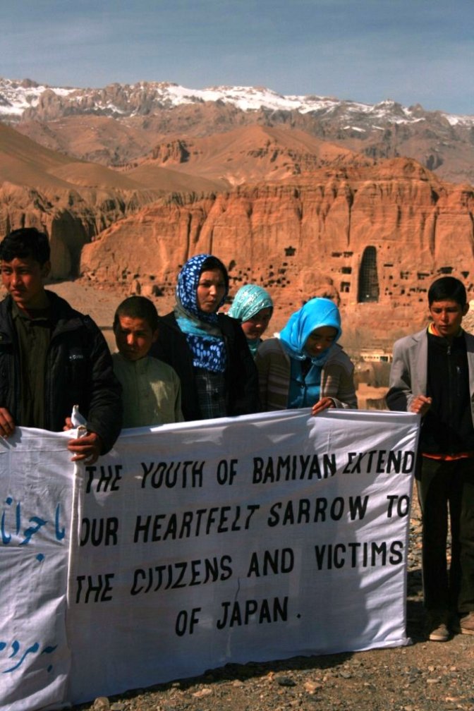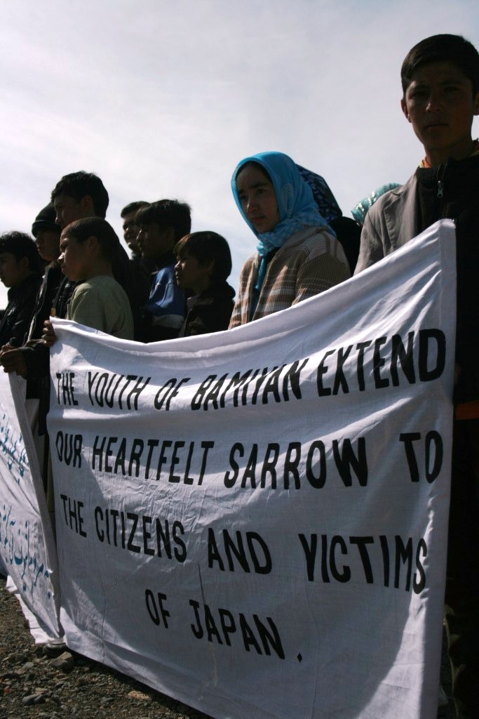 امروز عده ای ازجوانان بامیان به خاطراظهارهمدردی با آسیب دیدگان حادثه زلزله و سونامی اخیرجاپان که منجربه کشته شدن هزاران نفرگردیده است، بر فرازتپه چونی بامیان تجمع کردند.