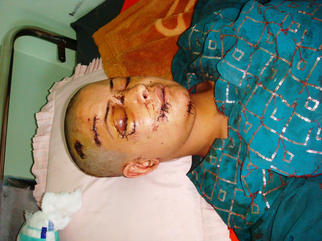 شوهر این زن، پس از لت و کوب شدید او با چاقو به او حمله کرده و علاوه بر پاره کردن دهنش با چاقو، و قطع دو بند از انگشتانش، قصد داشته چشمش را نیز از حدقه درآورد.
