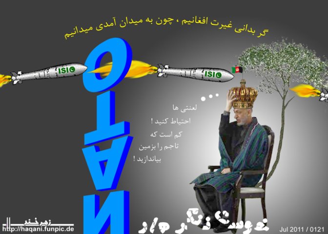 علت جوش و خروش درونی کرزی نه تنها فیر راکت های جنرال حمید گل و راکتمال شدن غیرت افغانی اوست بلکه او از حماقت های خود نیز خیلی رنج می برد که چرا در چنین موقعیت حساس با زبان سرخ زمینه بربادی چپن سبز را فراهم کرد و باداران اروپایی اش را از خود سخت آزرده خاطر ساخت که حالا دروازه ناتو بروی راکت های پاکستان باز گذاشته شده و از شرم روزگار حق اندک انتقاد و اعتراض را هم ندارد .