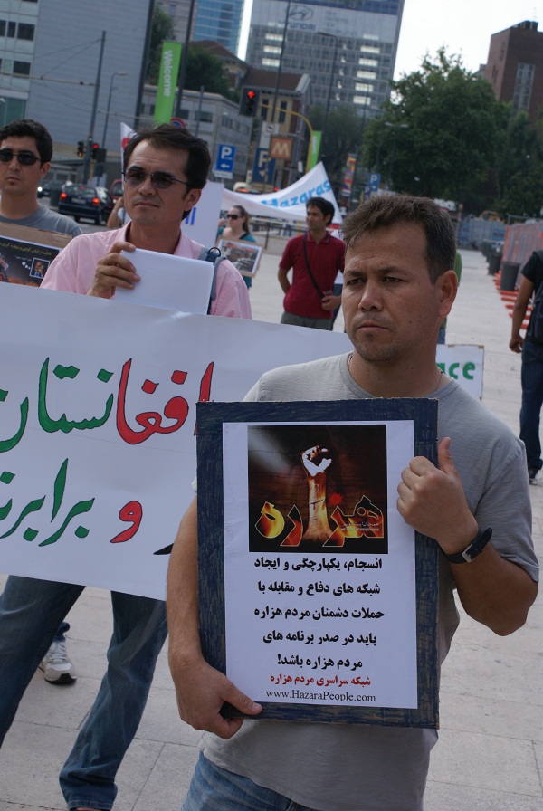 ما هزاره های اشتراک کننده در این تظاهرات، کشتار سیستماتیک مردم هزاره در افغانستان وپاکستان و اقدامات دولت افغانستان در قتل عام، کوچ اجباری، بی جا ساختن مردم هزاره از خانه های شان ، ایجاد ترور و دهشت توسط گروه های تروریست مانند کوچی طالبان در مناطق هزاره نشین را عمل عمدی بخاطر پاکسازی هزاره ها از افغانستان دانسته و شدیدا به آن اعتراض کرده و آن را محکوم می کنیم.