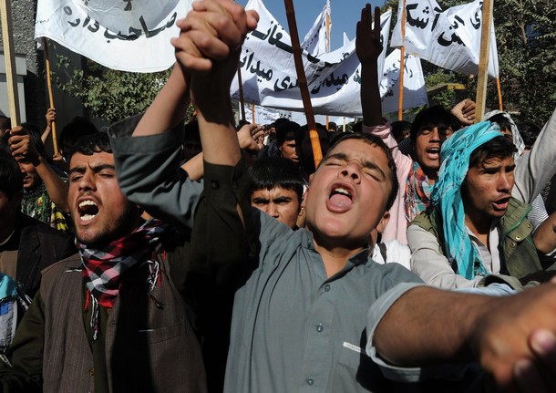 تظاهرکنندگان علیه پاکستان و سازمان اطلاعاتی این کشور، آی اس آی شعار دادند و ترور شخصیت های سیاسی در افغانستان را به عواملی در پاکستان نسبت دادند.