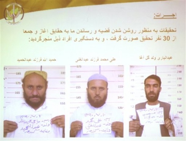 چهره عبدالباری، علی محمد و حمید الله که به اتهام دست داشتن در قتل ربانی بازداشت شده اند