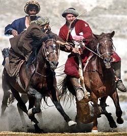 بزکشی مسابقه ای است که تاریخ ایجادش به دوران باستان باز می گردد. نام این ورزش به معنای کشتن بز است که از شکار بزهای کوهای توسط قهرمانان اسب سوار استنتاج شده است. امروزه اسب سوار یا تیمی که در این مسابقه شرکت می کند باید نعش این بز را به خط پایان برساند آن هم به عنوان نفر اول. این مسابقه حتی ممکن است به یک هفته نیز مدت انجامش طول بکشد.