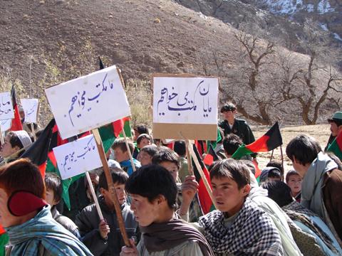 "موږ ښوونځي غواړو" هغه شعار دی چی د نيلی زده کوونکي يی د دايکندی په ولايت کی