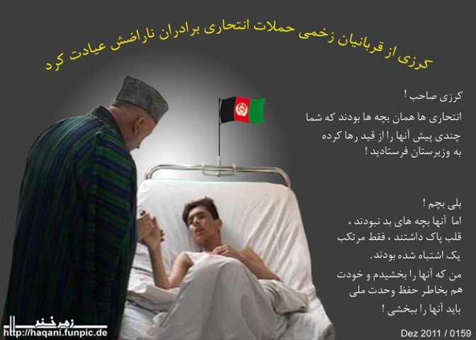 محـــترم حــامــد کــرزی از قــربانـیان زخمی حمــله انتحــاری برادران ناراضش عیــادت کــرد