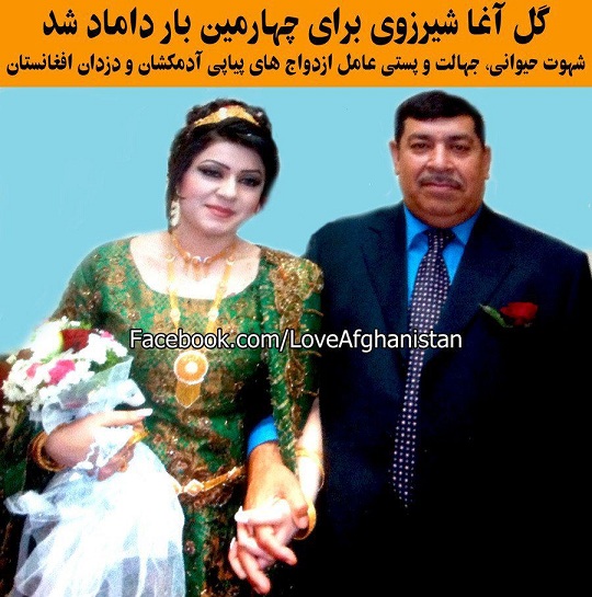 نشر فوتوی گل آغا شیرزی که دست در دست عروسش گذاشته است برایم جالبتر ازهمه بود .آقای گل آقا شیرزی استاندار ولایت ننگرهار برای چهارمین بار داماد شد که برایم خیلی دلچسپ و حایز اهمیت بود روی این موضوع میخواهم با آقای شیرزاد مکث کوتاهی نمایم .