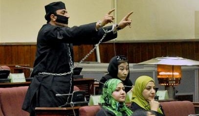یک عضو مجلس به قسم اعتراض دست ها و پاهایش را زنجیر پیچ کرد!